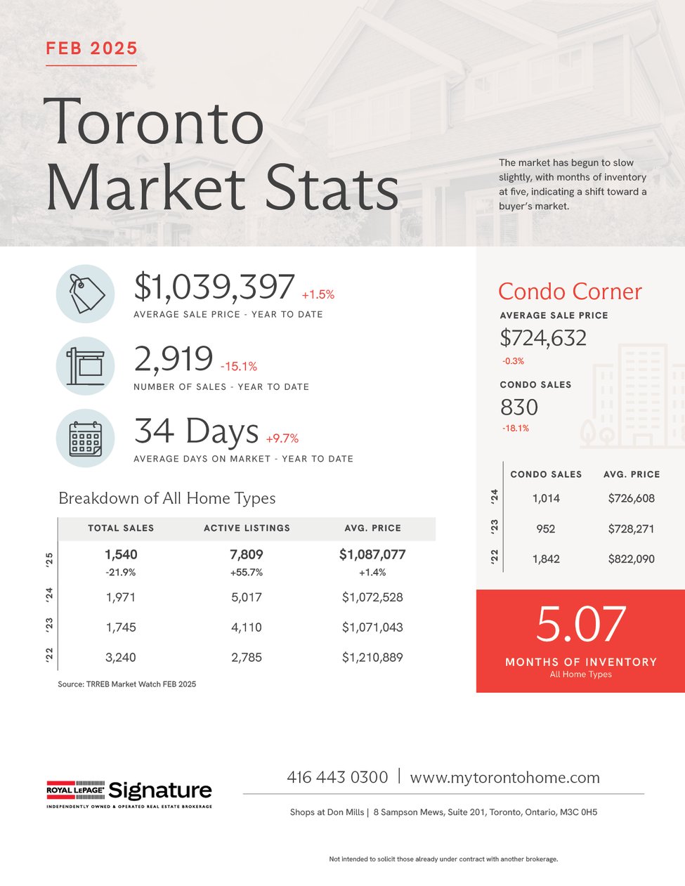 After all that February snow, it’s nice to see some warmer days ahead. But while the weather is heating up, the real estate market took a bit of a cool-down last month. Between political chatter (hello, provincial election and new tariffs on goods from Canada, Mexico, and China) and the winter slowdown, home sales in February were down compared to last year—while inventory remained high.